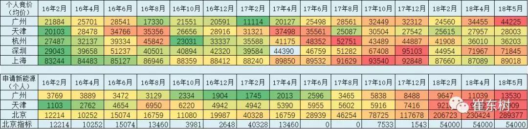 17年底以來的限購(gòu)城市的價(jià)格持續(xù)上升的趨勢(shì)較強(qiáng)。18年5月的各地車牌價(jià)格均保持高位,尤其是廣州、深圳、杭州的價(jià)格較17年5月均有上漲,形成較強(qiáng)的本地牌照的保值增值的預(yù)期。
