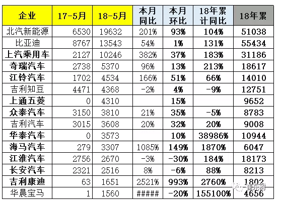 5月的江淮汽車和奇瑞汽車的新能源表現(xiàn)很強(qiáng),傳統(tǒng)車企的營(yíng)銷和適應(yīng)環(huán)境能力很強(qiáng)。民企的眾泰也是表現(xiàn)較優(yōu)秀。