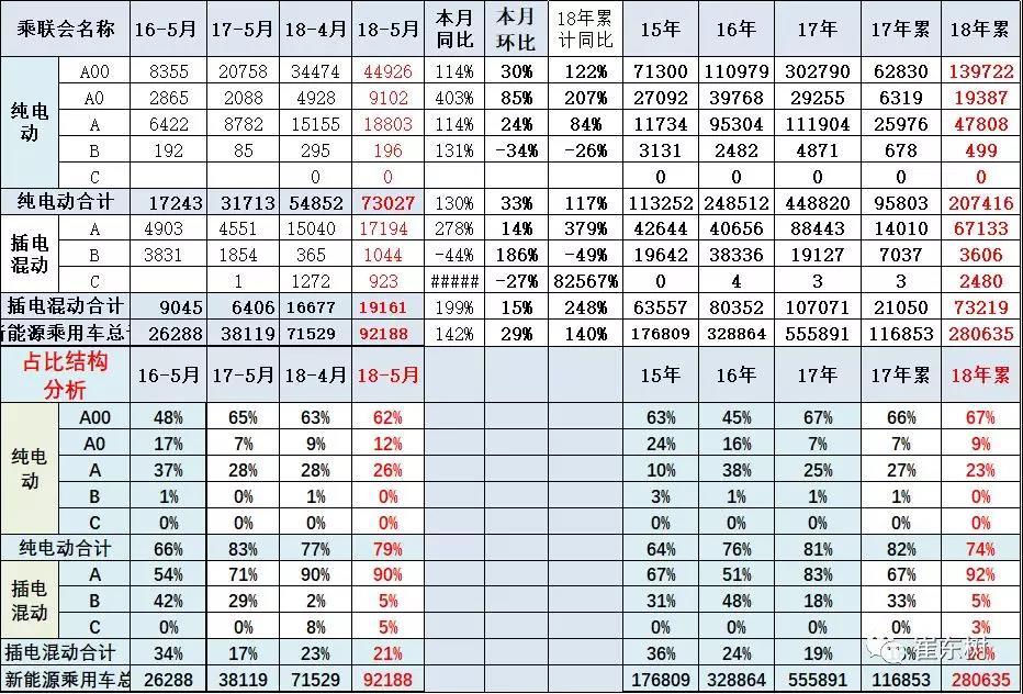 2018年是新能源車動(dòng)能轉(zhuǎn)換年,3月是18年新能源走勢(shì)的開局,5月市場(chǎng)持續(xù)發(fā)力,從面對(duì)補(bǔ)貼向面對(duì)市場(chǎng)的轉(zhuǎn)變已經(jīng)體現(xiàn)。2018年是新能源車增長(zhǎng)動(dòng)力從限購(gòu)和補(bǔ)貼政策推動(dòng)轉(zhuǎn)向市場(chǎng)拉動(dòng)的轉(zhuǎn)型年。2月新補(bǔ)貼政策后的入門級(jí)A00級(jí)電動(dòng)車面臨補(bǔ)貼大幅降低的壓力,因此3-5月的A00級(jí)增長(zhǎng)很強(qiáng),北汽新能源表現(xiàn)超強(qiáng)。5月的有插混車的表現(xiàn)很強(qiáng),比亞迪等較優(yōu)秀,這也是企業(yè)轉(zhuǎn)型搶市場(chǎng)的體現(xiàn)。