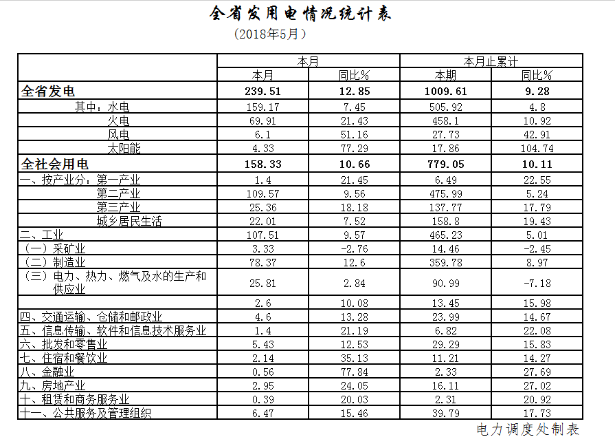 5月份,全省全社會(huì)用電158.33億千瓦時(shí),增長10.66%,其中工業(yè)用電107.51億千瓦時(shí),增長9.57%。