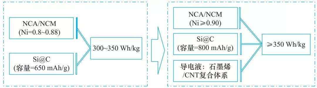 圖 1 300 Wh/kg 以上三元動力電池技術(shù)路線