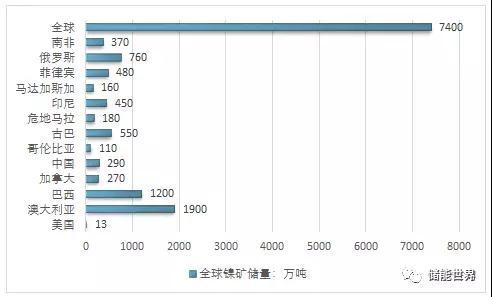 2017年全球鎳礦資源分布情況