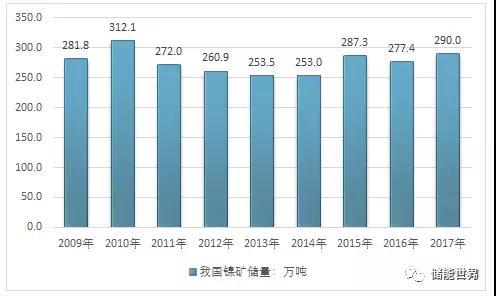 2009-2017年我國(guó)鎳礦儲(chǔ)量統(tǒng)計(jì)