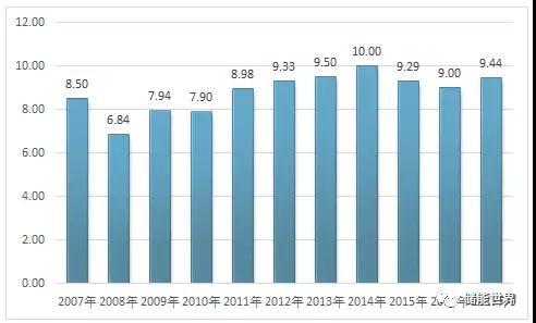 2007-2017年全球鎳礦產(chǎn)量走勢(shì)