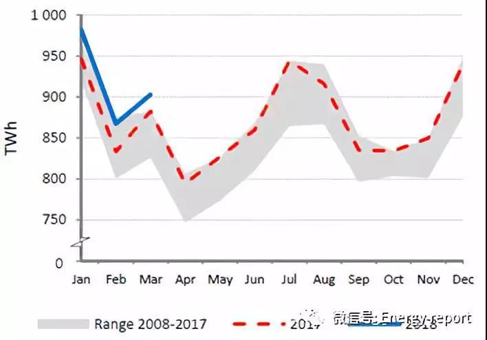 —寒冷的3月導致經(jīng)合組織歐洲地區(qū)國家的發(fā)電量同比增長了6.8%,幾乎達到了2018年1月的水平。