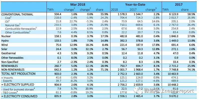 —2018年3月,風電和水電發(fā)電量分別同比增長了20.8%和15.6%,使可再生能源發(fā)電量占比達到了38.3%。