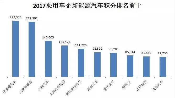 2017年乘用車企新能源積分排行如下: