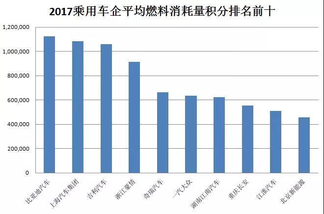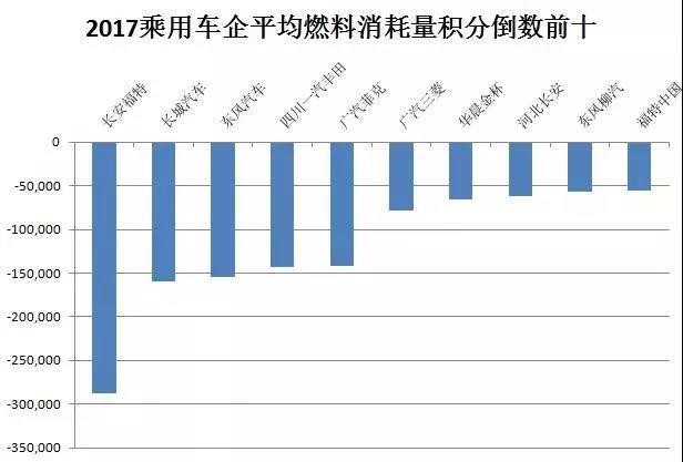根據(jù)前述公告,2017年油耗積分前十和倒數(shù)十位如下表。