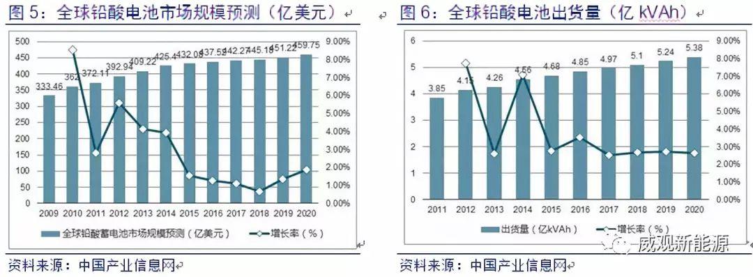 2017年全球鉛酸蓄電池市場規(guī)模約為429億美元(同比增長1%),預(yù)計未來5年將基本維持1%的增長速度。在全球市場范圍內(nèi),鉛酸蓄電池由于其技術(shù)成熟、安全性高、循環(huán)再生利用率高、適用溫帶寬、電壓穩(wěn)定、組合一致性好及價格低廉等優(yōu)勢,在電池市場占據(jù)主導(dǎo)地位。2017年,全球鉛酸蓄電池市場規(guī)模約為429億美元,同比增長1%。不過環(huán)境問題將是影響未來鉛酸蓄電池市場的關(guān)鍵因素。鉛酸蓄電池生產(chǎn)過程大量使用重金屬鉛,如果不能有效控制污染物排放,會對環(huán)境造成不良影響,鉛酸蓄電池發(fā)展面臨著較大的社會輿論壓力。美國鉛酸蓄電池的用鉛量約占全國用鉛總量的95%以上,由于法規(guī)健全和有效的管理,鉛酸蓄電池生產(chǎn)造成的鉛排放僅占總排放量的1.5%,2008年美國政府已將鉛酸蓄電池生產(chǎn)從主要鉛污染源中排除。除此之外,減少車輛排放和改進(jìn)燃油效率,也將導(dǎo)致汽車用鉛酸蓄電池市場的變化,預(yù)計未來5年將基本維持1%的增長速度。