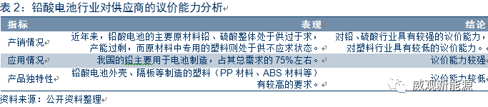 供應(yīng)商的議價能力:鉛酸蓄電池行業(yè)的上游包括鉛、硫酸、塑料等,鉛酸蓄電池行業(yè)對原材料的需求量大,鉛和硫酸行業(yè)整體呈現(xiàn)產(chǎn)能過剩,且電池制造是鉛的重要下游應(yīng)用領(lǐng)域,從而鉛酸蓄電池行業(yè)對鉛和硫酸具有較強(qiáng)的議價能力,而塑料供不應(yīng)求,且行業(yè)對塑料的特性有較高的要求,從而對塑料行業(yè)議價能力較低。