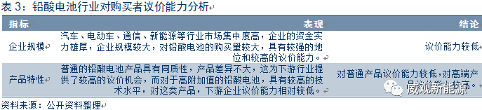 購買者的議價能力:鉛酸蓄電池的下游行業(yè)主要是汽車、電動車、通信、新能源等,通過綜合分析,鉛酸蓄電池行業(yè)的議價能力整體較低,但針對少數(shù)生產(chǎn)高端鉛酸蓄電池產(chǎn)品的企業(yè)議價能力相對較高。