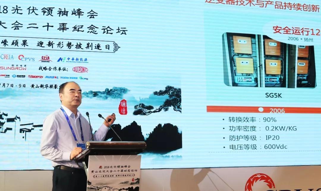 論壇以“展二十載崢嶸碩果,迎新形勢披荊逐日”為主題,由中國循環(huán)經(jīng)濟協(xié)會可再生能源專業(yè)委員會、中國可再生能源學會光伏專業(yè)委員會等單位主辦,陽光電源承辦,百余名行業(yè)專家、業(yè)內(nèi)領袖、優(yōu)秀企業(yè)家重返黃山,同憶初心,積極應對政策、市場等產(chǎn)業(yè)環(huán)境的多重攻勢,曹仁賢應邀發(fā)表了《光伏發(fā)電系統(tǒng)最新技術及展望》的主旨演講。