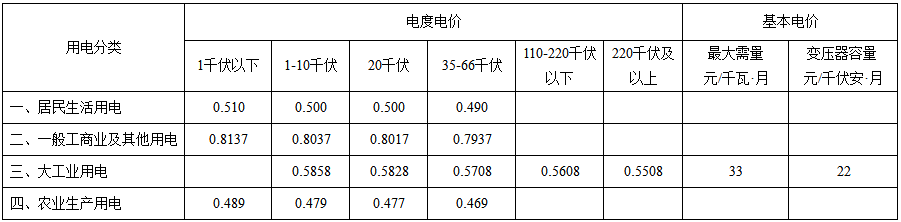 4.上表所列價(jià)格,除農(nóng)業(yè)生產(chǎn)用電外,均含可再生能源電價(jià)附加,其中:居民生活用電0.1分錢,其他各類用電1.9分錢。