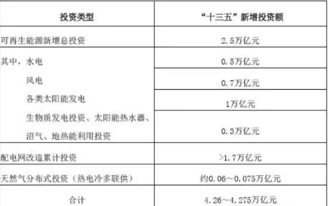從可再生能源投資力度來看,光伏發(fā)電成為各類可再生能源中的投資重點(diǎn)?!犊稍偕茉窗l(fā)展“十三五”規(guī)劃》顯示,到2020年,我國(guó)水電將新增投資約5000億元;我國(guó)新增風(fēng)電投資約7000億元;我國(guó)新增各類太陽能發(fā)電投資約1萬億元。加上生物質(zhì)發(fā)電投資、太陽能熱水器、沼氣、地?zé)崮芾玫龋笆濉逼陂g可再生能源新增投資約2.5萬億元。