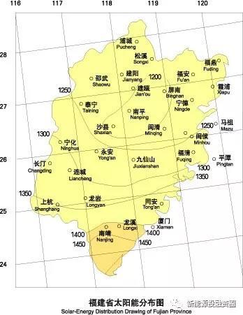 福建省太陽能資源從地域分布來看,從北向南逐漸增加。各市的太陽能資源概況見下表。