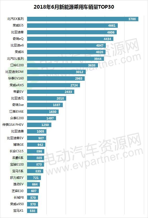 根據(jù)乘聯(lián)會數(shù)據(jù),經(jīng)電動(dòng)汽車資源網(wǎng)梳理,2018年6月,北汽新能源打造的新一代爆款車型北汽EX系列不負(fù)所望的奪得了新能源汽車銷量桂冠,銷售了5708臺,不過這應(yīng)該也與前期未交付訂單,集中交付有關(guān),7月是否還能保持目前的銷量我們且拭目以待。奪得亞軍的是榮威Ei5,銷售了4661臺,排在第三位的是比亞迪秦,銷售了4606臺。此外6月銷量超過三千臺的新能源乘用車還有奇瑞eQ(4434)、比亞迪e6(4047)、榮威i6(4028)、北汽EU系列(3944)、江鈴E200(3638)、比亞迪宋DM(3012)。