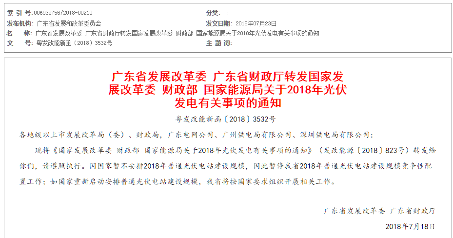 中國(guó)儲(chǔ)能網(wǎng)訊:7月23日,廣東省發(fā)展改革委、廣東省財(cái)政廳轉(zhuǎn)發(fā)國(guó)家發(fā)展改革委、財(cái)政部、國(guó)家能源局關(guān)于2018年光伏發(fā)電有關(guān)事項(xiàng)的通知,因國(guó)家暫不安排2018年普通光伏電站建設(shè)規(guī)模,因此暫停我省2018年普通光伏電站建設(shè)規(guī)模競(jìng)爭(zhēng)性配置工作;如國(guó)家重新啟動(dòng)安排普通光伏電站建設(shè)規(guī)模,我省將按國(guó)家要求組織開(kāi)展相關(guān)工作。
