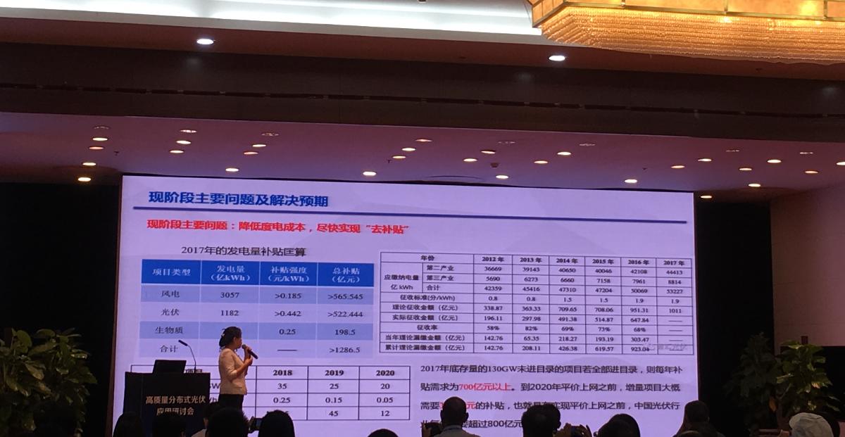 智匯光伏創(chuàng)始人王淑娟在演講中提到,如果2017年底存量130GW未進(jìn)目錄的光伏項(xiàng)目全部進(jìn)目錄,則每年補(bǔ)貼需求為700億元以上。到2020年平價(jià)上網(wǎng)到來之前,增量項(xiàng)目大概需要160億元的補(bǔ)貼。這樣算來,平價(jià)上網(wǎng)之前,中國光伏行業(yè)每年需要超800億元的補(bǔ)貼。