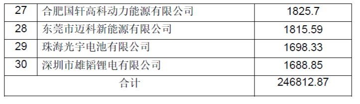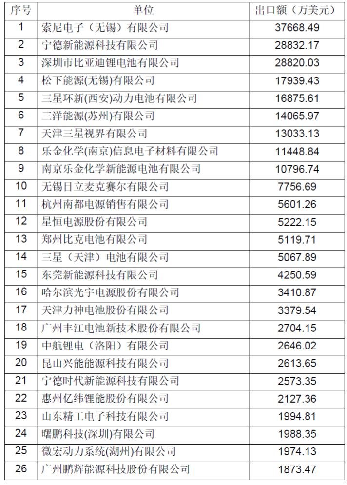 表三 2017年度中國鋰離子電池出口額30強企業(yè)名單
