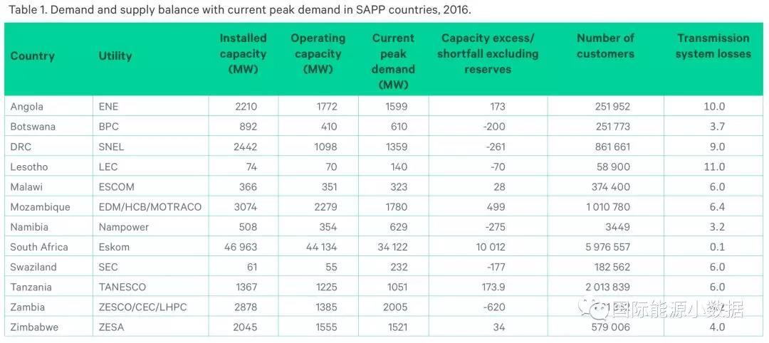 中國(guó)儲(chǔ)能網(wǎng)訊:根據(jù)斯德哥爾摩環(huán)境研究所(SEI)發(fā)布的一份報(bào)告,在南部非洲12個(gè)國(guó)家中,有6個(gè)嚴(yán)重缺電(見(jiàn)下表),而且輸電系統(tǒng)的線損也偏高。