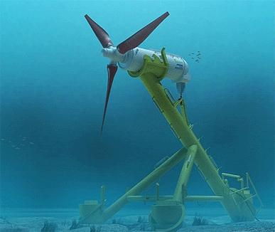 HS1000開發(fā)者是安德里茨•哈默弗斯,這是一種“潮汐發(fā)電”渦輪機(jī)。這是一種型號的風(fēng)力渦輪機(jī),但卻是安裝在海底,它的葉片會旋轉(zhuǎn),在潮汐流中發(fā)電。潮汐渦輪機(jī)具有更短的刀片,旋轉(zhuǎn)速度較慢。能量轉(zhuǎn)換需要順著洋流的方向進(jìn)行,這就要傾斜刀片。這種結(jié)構(gòu)設(shè)計成三腳架,這樣就有最小的碳足跡,而且在海底,安裝到位需要借助重力和額外的壓載物。