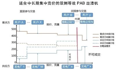 廣東電力市場(chǎng)2016年月度電量集中競價(jià)采用了一種獨(dú)特的價(jià)格電費(fèi)返還出清機(jī)制,受其啟發(fā),本文提出一種適合電力中長期集中競價(jià)的“雙側(cè)等效PAB出清機(jī)制”。