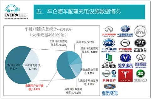 私人類充電基礎設施數(shù)據(jù)情況,截至2018年7月,通過聯(lián)盟內成員整車企業(yè)采樣498569輛車的車樁相隨信息,其中建設安裝私人類充電樁336868個,整體未配建率約32.43%,其中約17.8%是由于集團用戶采購純電動轎車作為出租車、分時租賃用車等運營專用車輛而不需要車企隨車配建充電設施所致。另一方面,因私購車的充電樁配建約為82.2%。
