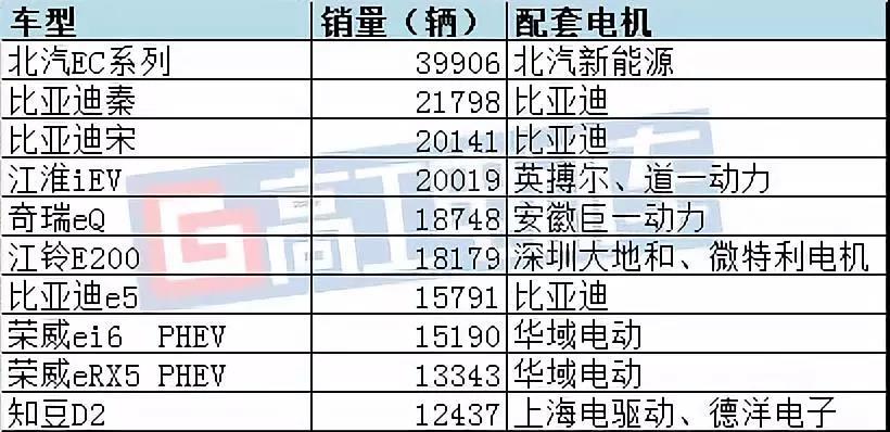 需要特別提及的是,此前為知豆D2提供配套的山東德洋電子。今年由于知豆銷量的下滑,山東德洋電子未能擠進(jìn)電機(jī)排榜TOP 10。以下是上半年新能源汽車銷量排行前十車型的配套電機(jī)情況: