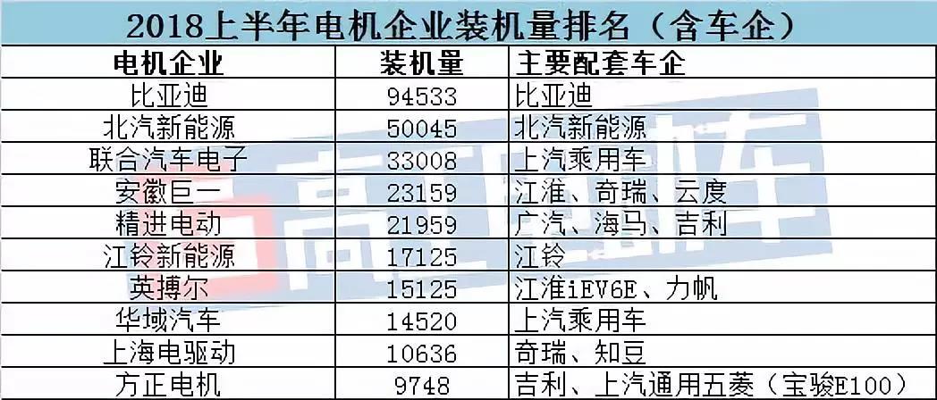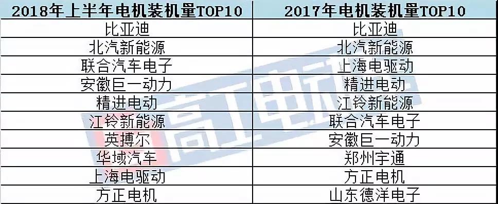 對(duì)比2017年電機(jī)裝機(jī)量TOP 10來(lái)看,今年上半年,英搏爾、華域汽車擠進(jìn)了前十名,主要原因是這兩家企業(yè)配套的新能源乘用車上半年有不錯(cuò)的銷量。