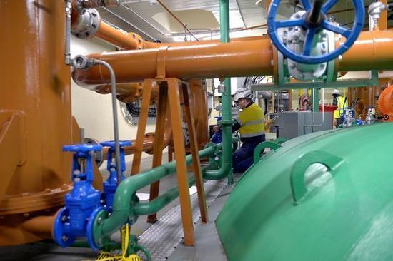 圖示:水通過(guò)管道泵進(jìn)澳大利亞塔斯馬尼亞塞薩納大壩內(nèi)