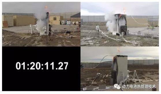 不管是內(nèi)部觸發(fā)還是外部觸發(fā),實驗過程沒有外部直接去中斷或干預(yù)燃燒,這次實驗為公共消防提供了一些數(shù)據(jù),如外部加熱約1h會達到可維持的熱失控條件,電池?zé)崾Э乇Wo,火災(zāi)反應(yīng)及處理機制等,當然還有一些燃燒氣體成分分析等等。