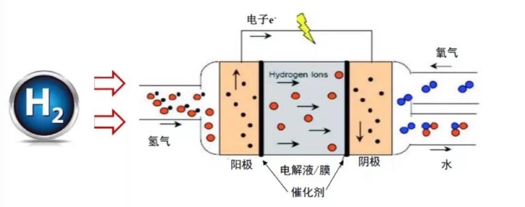 氫分子又小又活潑。它透過質(zhì)子膜時(shí),電子被從分子上剝離,只留下帶正電的氫質(zhì)子通過,氫質(zhì)子被吸引到薄膜另一側(cè)的電極與氧分子結(jié)合。電解質(zhì)薄膜兩側(cè)的電極板將氫氣拆分成氫離子(正電)和電子、將氧氣拆分成氧離子(負(fù)電)和電子,電子在電極板之間形成電流,兩個(gè)氫離子和一個(gè)氧離子結(jié)合成為水,是反應(yīng)的唯一廢物。