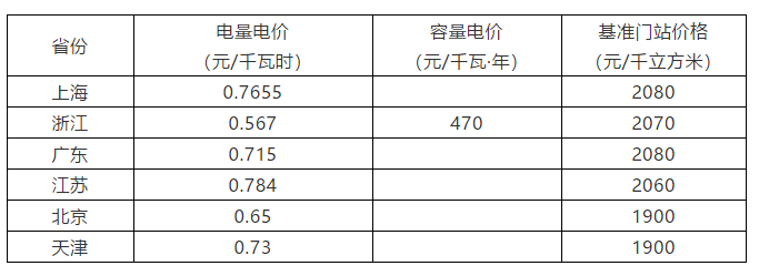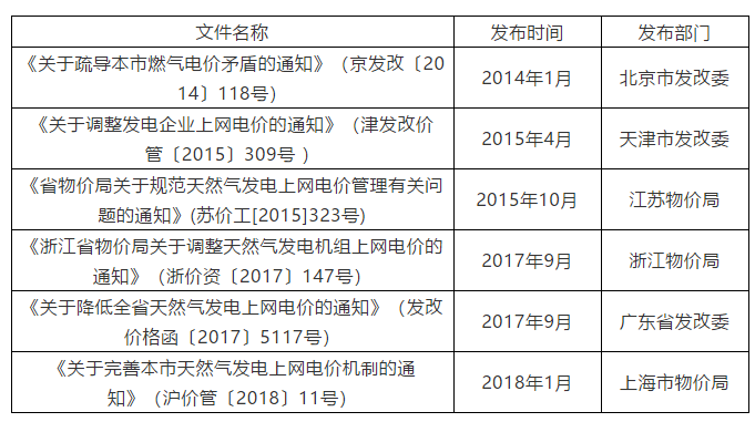 表4 地方天然氣發(fā)電統(tǒng)一電價規(guī)定