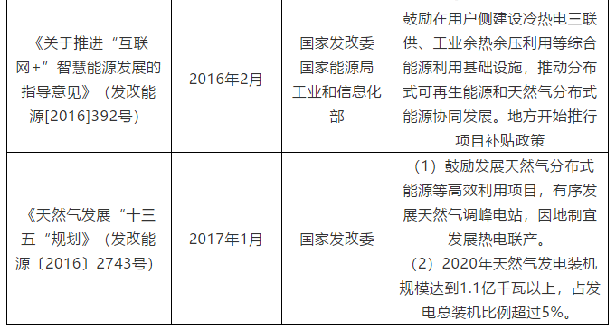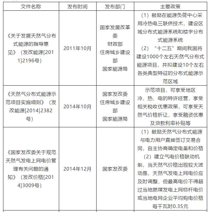 國家層面對于天然氣發(fā)電及燃氣聯(lián)供項目有明確補貼支持和數(shù)量要求的政策性文件主要如下表1所示。