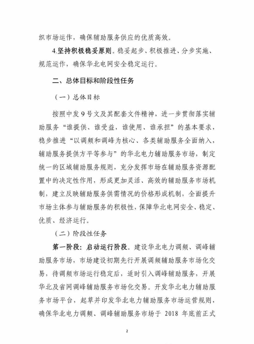 《方案》的整體思路清晰,將立足區(qū)域市場,分階段分步驟建設華北電力輔助服務市場,在“市場建設初期現(xiàn)行開展調(diào)頻輔助服務市場化交易,待調(diào)頻市場運行穩(wěn)定后,適時引入調(diào)峰輔助服務,開展華北及省網(wǎng)調(diào)峰輔助服務市場化交易”。