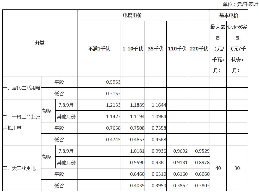 注:電熱鍋爐,冰(水)蓄冷空調(diào)用電在一般工商業(yè)及其他用電基礎(chǔ)上:7、8、9月每千瓦時下浮0.5039元,其他月份每千瓦時下浮0.4737元,平段每千瓦時下浮0.307元,低谷每千瓦時下浮0.1828元。