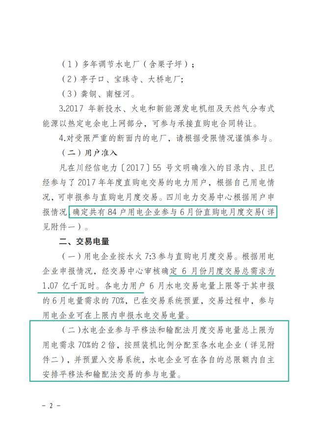 相比于5月25日發(fā)布的《關(guān)于開展2017年6月直購電月度交易的預(yù)公告》,新公告對水電企業(yè)參與平移法和輸配法月度交易電量總上限進(jìn)行了下調(diào),由用電需求的2倍變成了用電需求70%的2倍。
