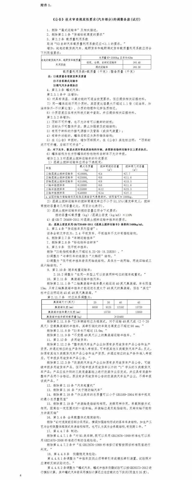 1.《公告》技術審查規(guī)范性要求(汽車部分)的調(diào)整條款(試行)
