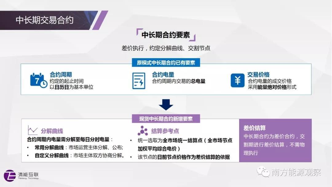 現(xiàn)貨市場(chǎng)采用全電量?jī)?yōu)化、分時(shí)分節(jié)點(diǎn)定價(jià)的機(jī)制,為與現(xiàn)貨市場(chǎng)配合與銜接,中長(zhǎng)期交易合約將有以下幾點(diǎn)變化: