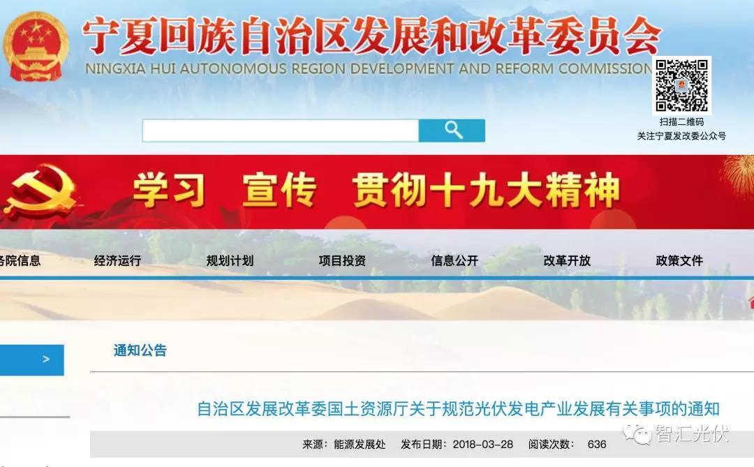 2018年2月27日,寧夏自治區(qū)發(fā)改委、國土廳關(guān)聯(lián)合發(fā)布《關(guān)于規(guī)范光伏發(fā)電產(chǎn)業(yè)發(fā)展有關(guān)事項(xiàng)的通知》(寧發(fā)改能源(發(fā)展)〔2018〕118號),文件提出: