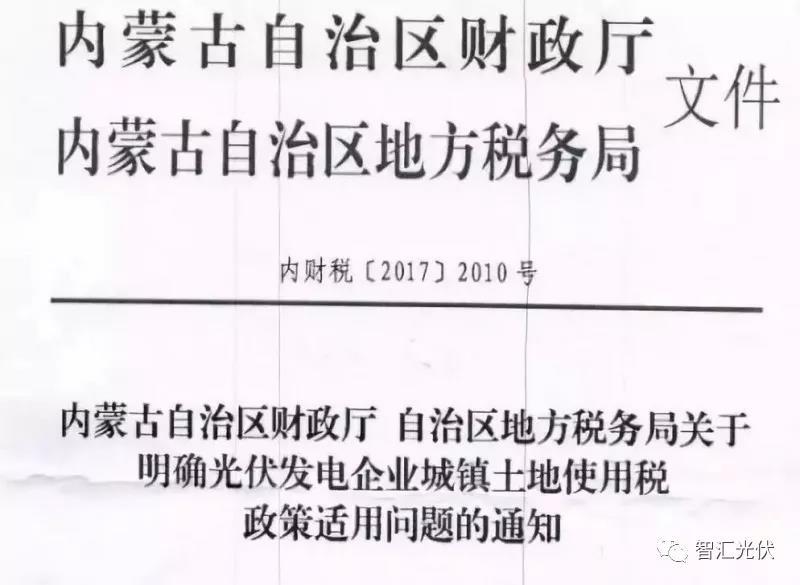 2017年12月,內(nèi)蒙古財(cái)政廳、地方稅務(wù)局聯(lián)合發(fā)布《關(guān)于明確光伏發(fā)電企業(yè)城鎮(zhèn)土地使用稅政策適用問題的通知》,文件提出: