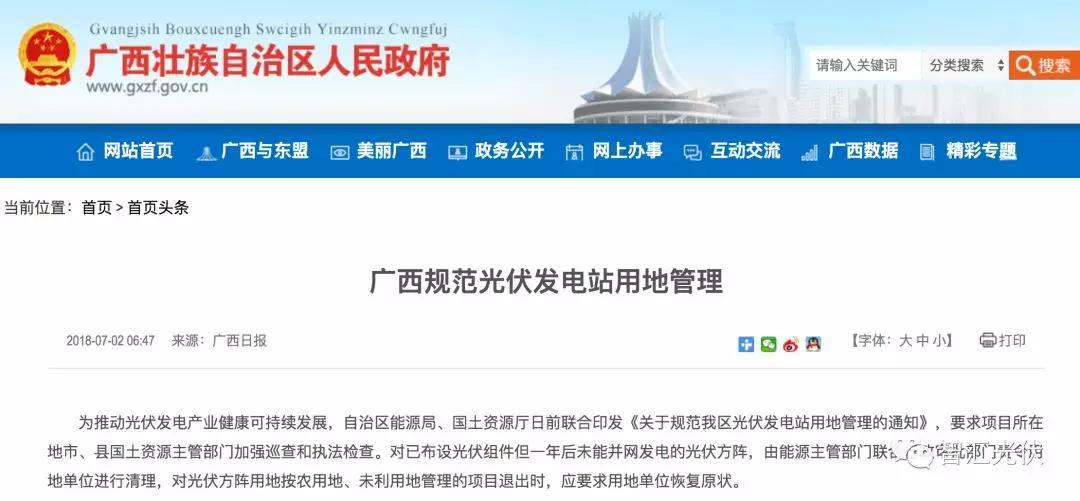 2018年6月,廣西能源局、國土資源廳聯(lián)合下發(fā)《關(guān)于規(guī)范我區(qū)光伏發(fā)電站用地管理的通知》,文件提出: