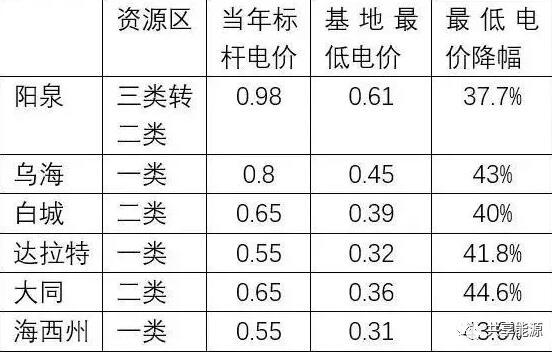 領(lǐng)跑基地投標(biāo)電價(jià)不斷刷新最低電價(jià)---第三批領(lǐng)跑基地投標(biāo)中,在白城的0.39元/千瓦時(shí)最低投標(biāo)電價(jià)之后,最低電價(jià)仍在不斷刷新,從達(dá)拉特旗的0.32元/千瓦時(shí)到大同的0.36元/千瓦時(shí),再到青海基地的0.31元/千瓦時(shí)。