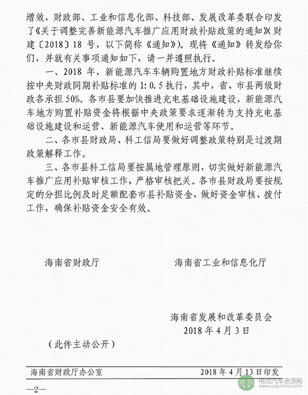 中國(guó)儲(chǔ)能網(wǎng)訊:海南省轉(zhuǎn)發(fā)四部委發(fā)布的《關(guān)于調(diào)整完善新能源汽車推廣應(yīng)用財(cái)政補(bǔ)貼政策的通知》,對(duì)海南省新能源汽車地補(bǔ)做出規(guī)定和解釋。2018年,新能源汽車車輛購(gòu)置地方財(cái)政補(bǔ)貼標(biāo)準(zhǔn)繼續(xù)按中央財(cái)政同期補(bǔ)貼標(biāo)準(zhǔn)的1:0.5執(zhí)行,其中,省、市縣兩級(jí)財(cái)政各承擔(dān)50%。各市縣要加快推進(jìn)充電基礎(chǔ)設(shè)施建設(shè),新能源汽車地方購(gòu)置補(bǔ)貼資金將根據(jù)中央政策要求逐漸轉(zhuǎn)為支持充電基礎(chǔ)設(shè)施建設(shè)和運(yùn)營(yíng)、新能源汽車使用和運(yùn)營(yíng)等環(huán)節(jié)。