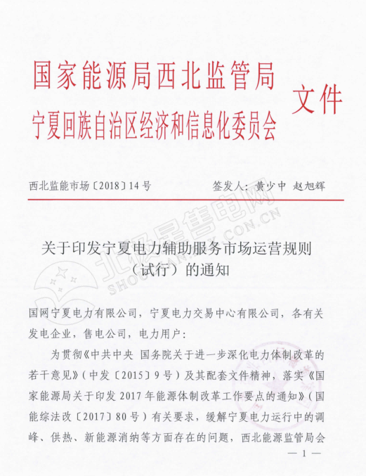 中國儲能網(wǎng)訊:2018年3月22日,西北能監(jiān)局、寧夏回族自治區(qū)經(jīng)信委聯(lián)合下發(fā)了《寧夏電力輔助服務(wù)市場運(yùn)營規(guī)則(試行)的通知》,將解決寧夏電力運(yùn)行中的調(diào)峰、供熱、新能源消納等方面存在的問題,這標(biāo)志著寧夏電力輔助服務(wù)向市場化邁出重要一步。