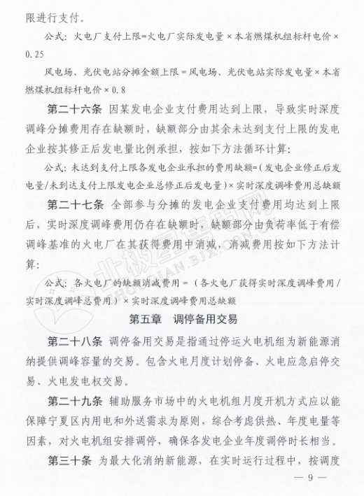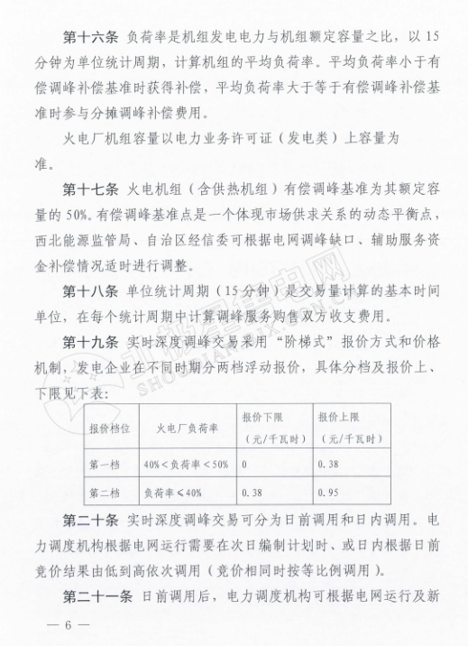 而在這份《電力輔助服務(wù)市場運(yùn)營規(guī)則》里,可以看出寧夏全力支持新能源消納的態(tài)度。為火電企業(yè)的停機(jī)備用也做出了調(diào)停補(bǔ)償?shù)囊?guī)定,補(bǔ)償時間最長為10天,免去了火電企業(yè)的后顧之憂。另外,還規(guī)定了風(fēng)電、光伏企業(yè)購買到的可調(diào)節(jié)負(fù)荷電力為風(fēng)電、光伏企業(yè)對應(yīng)時段的新增發(fā)電空間,電力調(diào)度機(jī)構(gòu)須嚴(yán)格保證風(fēng)電、光伏企業(yè)交易電力的發(fā)電空間,為風(fēng)、光企業(yè)增加了一道護(hù)身符。