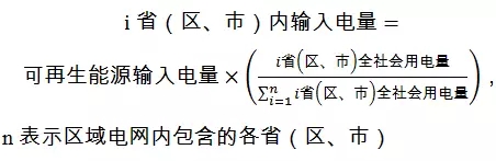 5、跨省跨區(qū)可再生能源電力交易,存在“省送省”、“省送區(qū)域”兩種情況。針對“省送區(qū)域”情況,如華東、華中接受外省輸入的可再生能源電量時(shí),按該區(qū)域內(nèi)各省全社會用電量占本區(qū)域電網(wǎng)內(nèi)全社會用電量的比重,計(jì)算各省輸入的可再生能源電量。即: