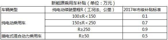南京發(fā)布的《2017年南京市新能源汽車推廣應(yīng)用財(cái)政補(bǔ)貼實(shí)施細(xì)則》指出,新能源乘用車按國補(bǔ)1:0.5倍補(bǔ)助,省級(jí)補(bǔ)貼和市區(qū)級(jí)補(bǔ)貼總額不超過扣除國家補(bǔ)貼后汽車售價(jià)的60%。