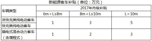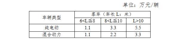 其它新能源客車補(bǔ)貼標(biāo)準(zhǔn)
