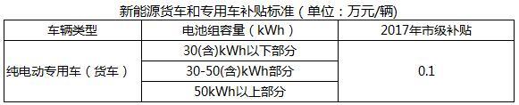 純電動(dòng)貨車和專用車補(bǔ)貼標(biāo)準(zhǔn)